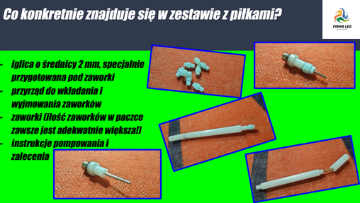 Do piłek dodajemy oprzyrządowanie to znaczy: iglice, przyrządy i zaworki.