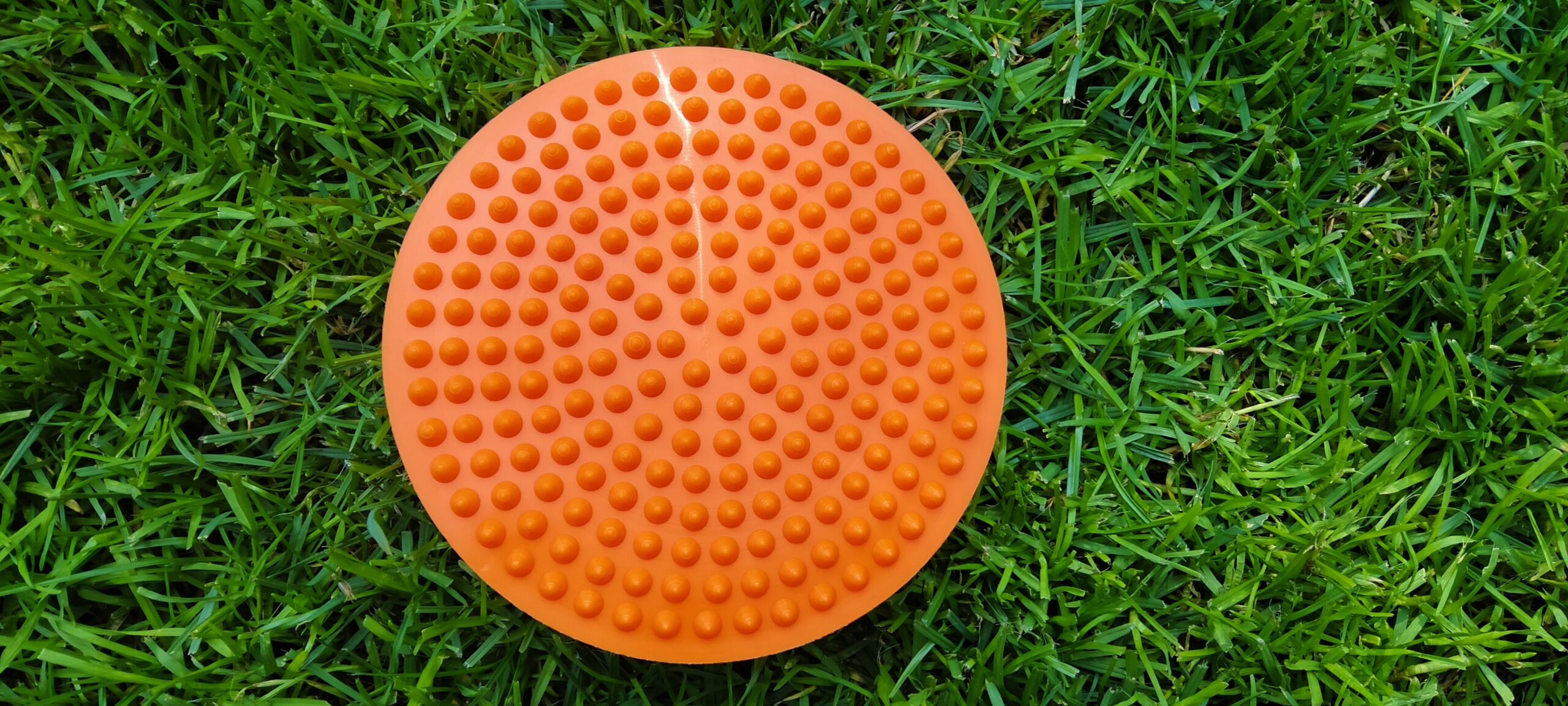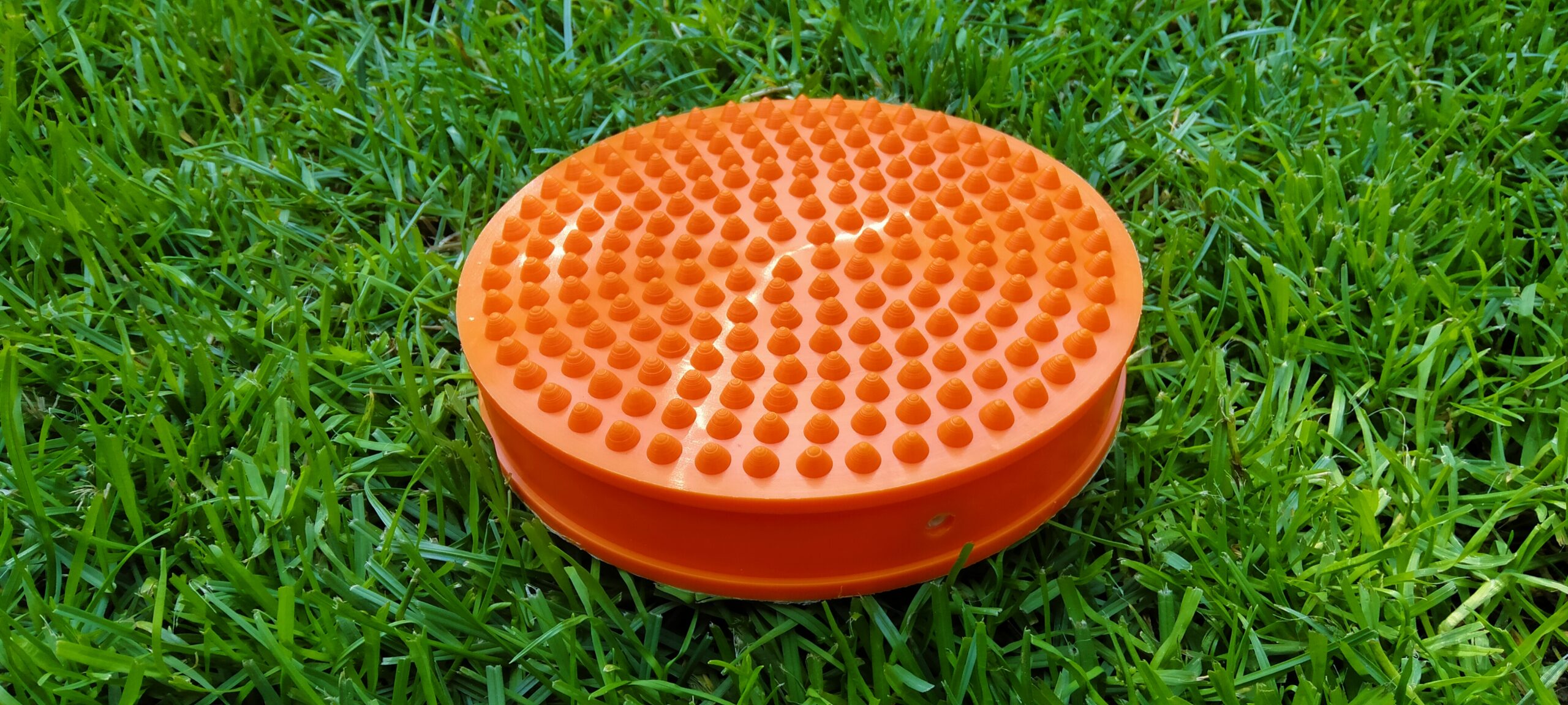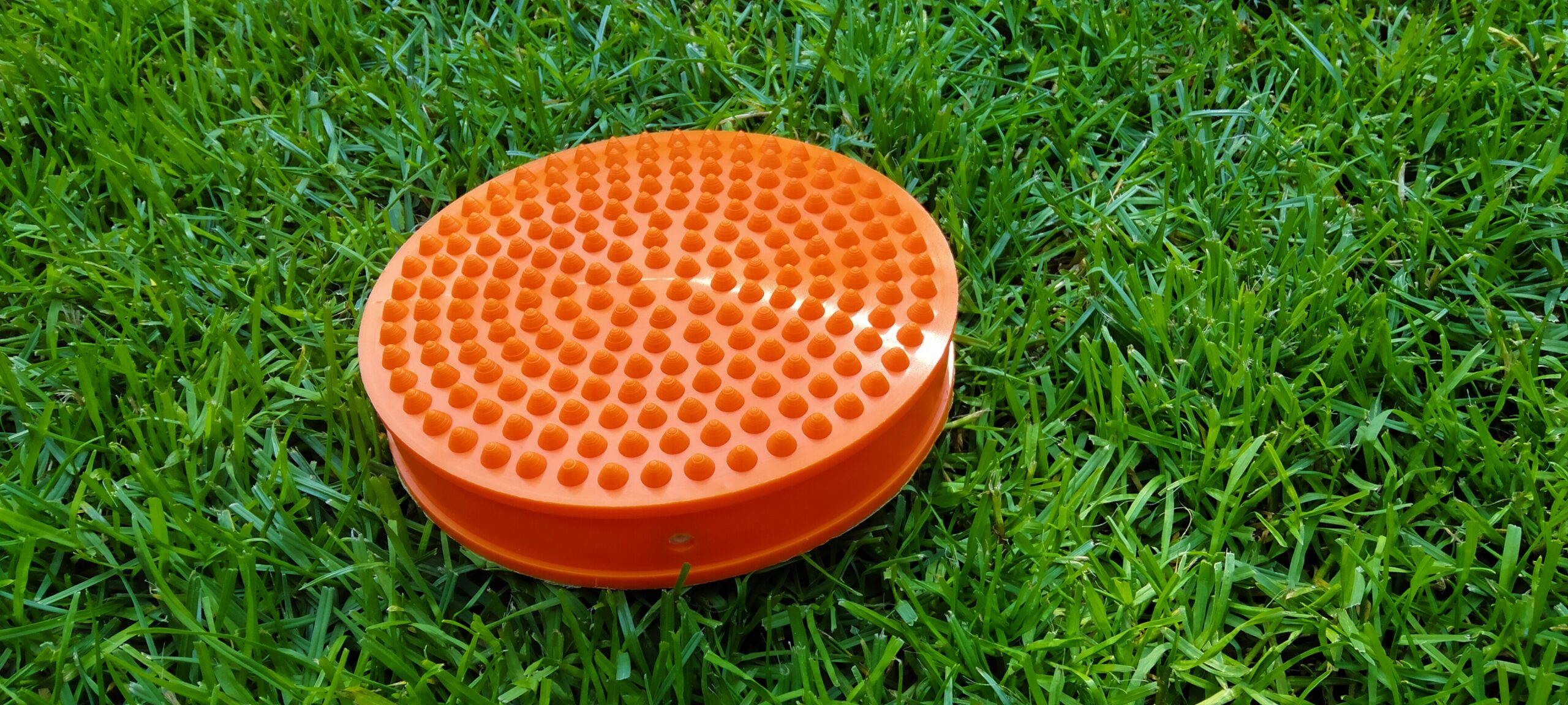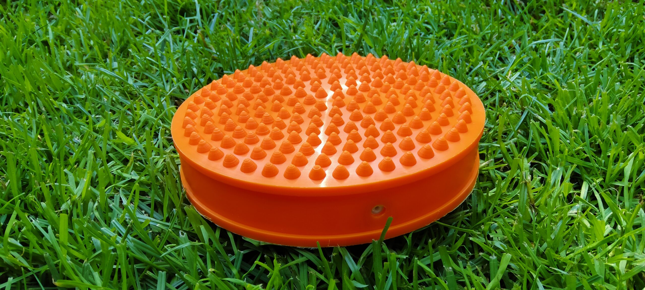 Dysk korekcyjny do siedzenia i treningu równoważnego, rehabilitacji oraz ćwiczeń fitness. Na jednej powierzchni dysk posiada wypustki, które mają około 3,5 mm wysokości.