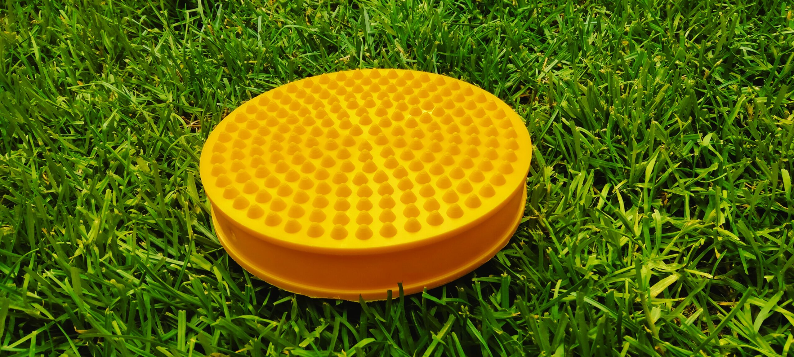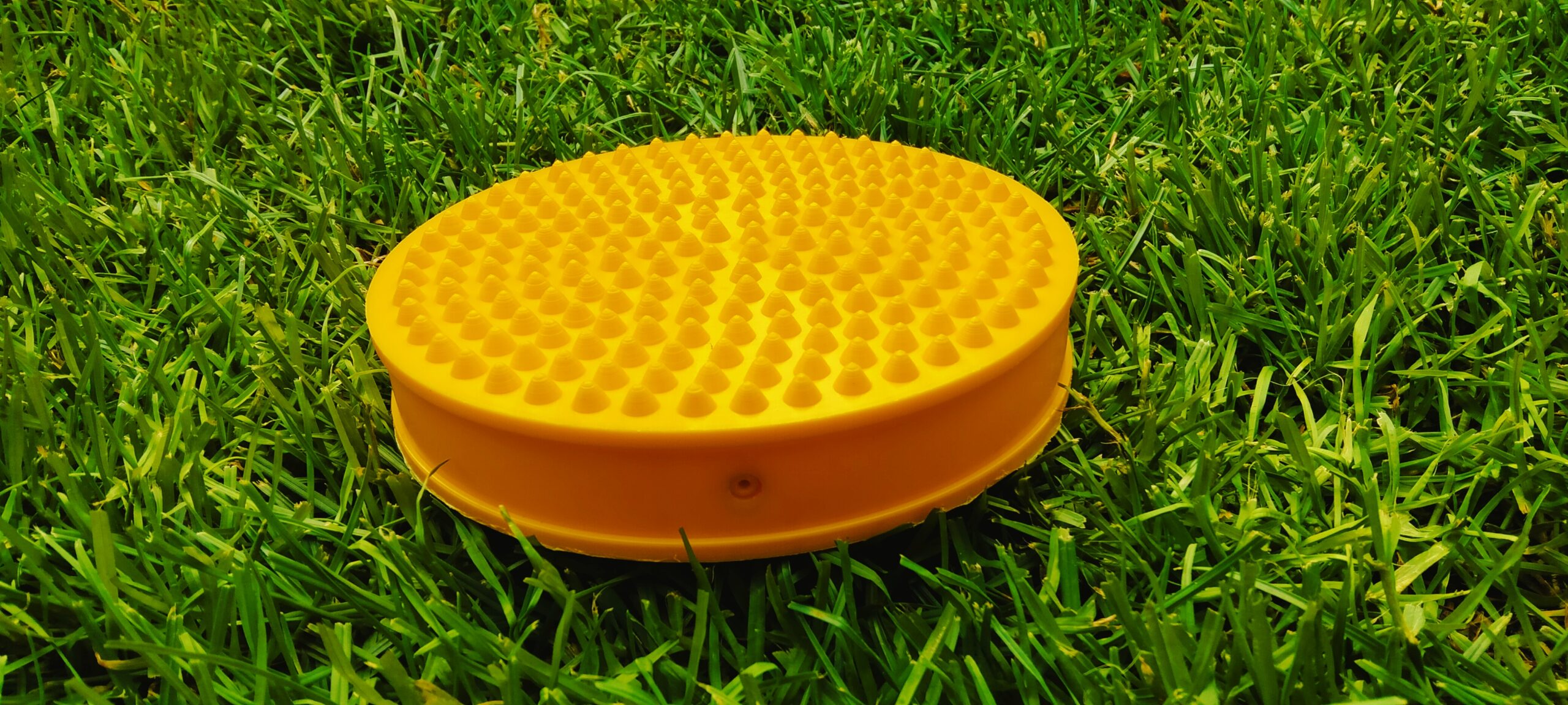 Dysk korekcyjny do siedzenia i treningu równoważnego, rehabilitacji oraz ćwiczeń fitness. Na jednej powierzchni dysk posiada wypustki, które mają około 3,5 mm wysokości.